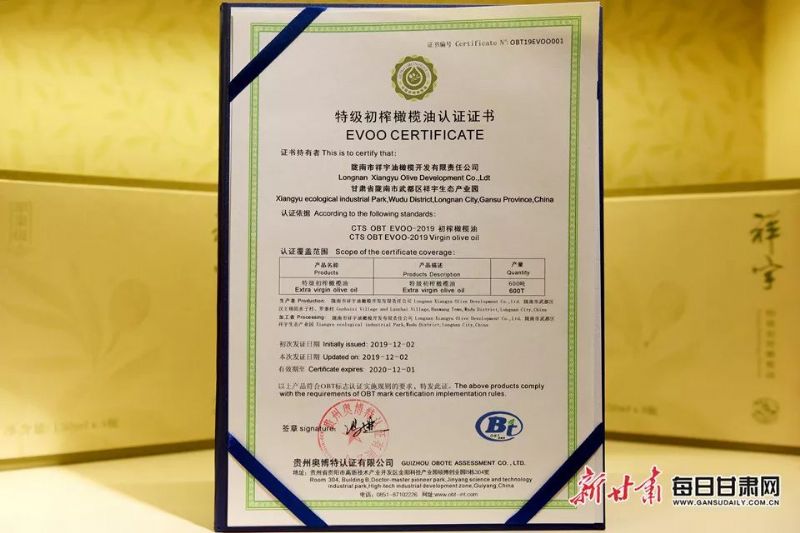 這一年,祥宇橄欖油榮獲甘肅省人民政府質(zhì)量獎