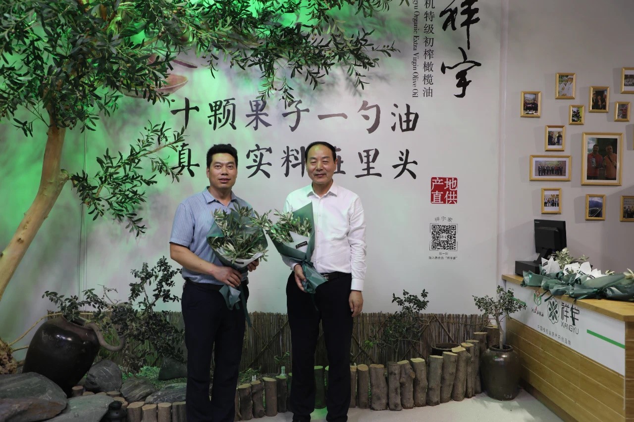 在產(chǎn)品體驗(yàn)區(qū)王總向陳書(shū)記一行介紹了祥宇特級(jí)初榨橄欖油、橄欖茶、橄欖菜、橄欖保健品等系列產(chǎn)品,