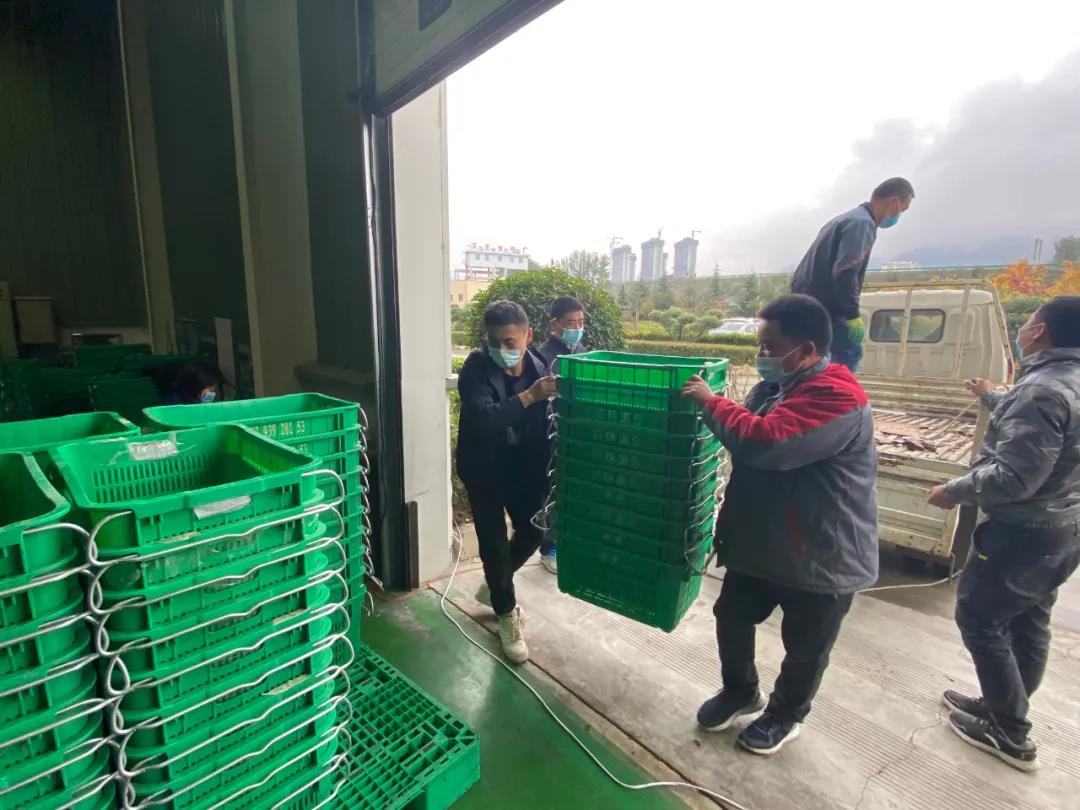 鮮果收購現(xiàn)場,所有工作人員都佩戴好口罩,過磅、驗(yàn)果、卸車、入庫等工作在有序進(jìn)行。