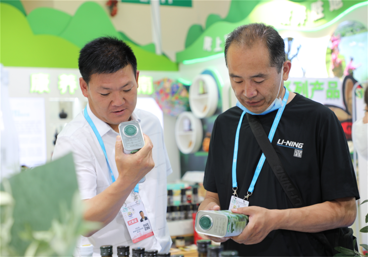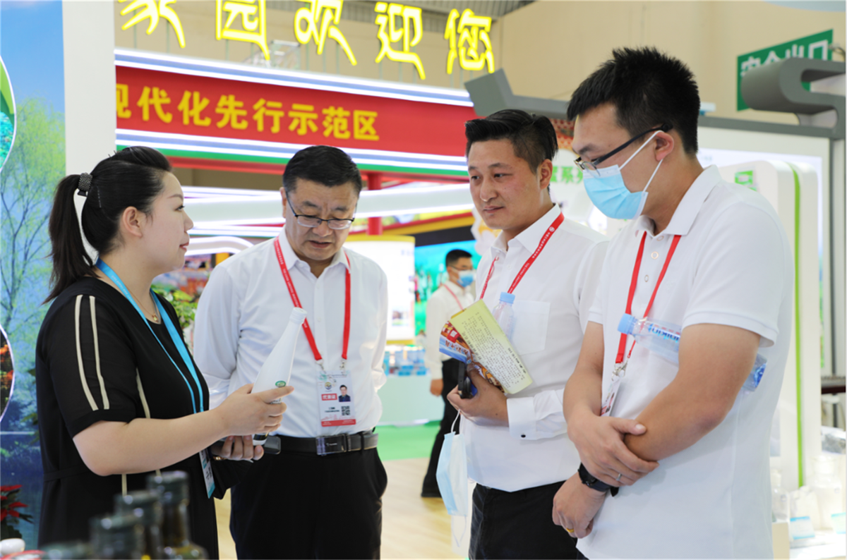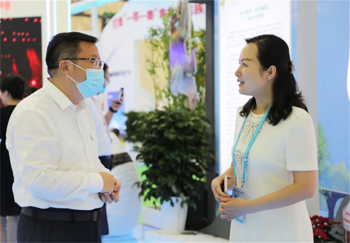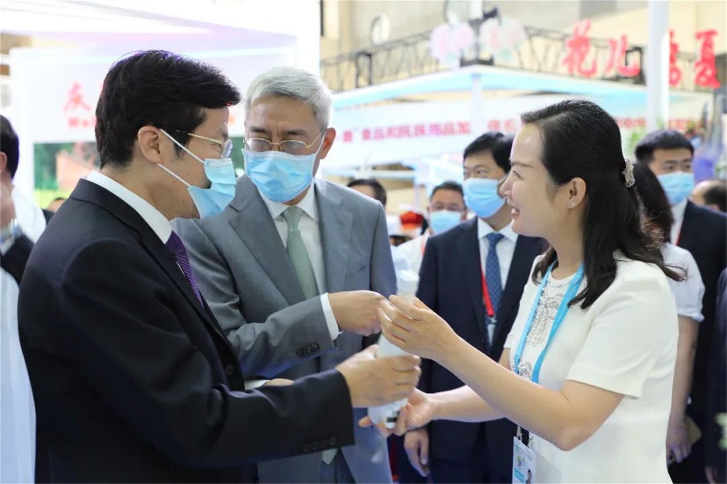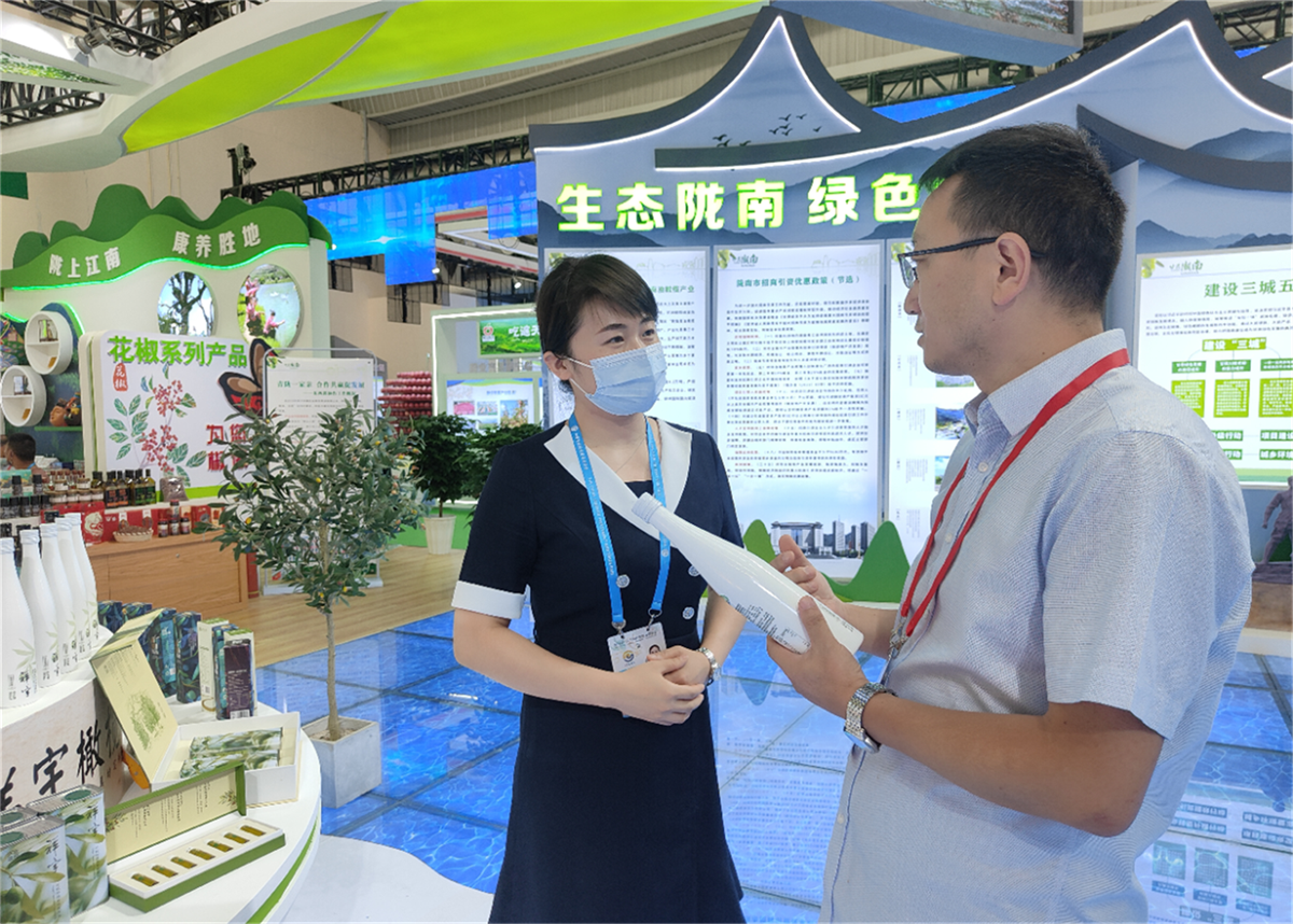 省市領導走進隴南館,祥宇公司董事長劉玉紅邀請各位領導品鑒了祥宇系列產品,