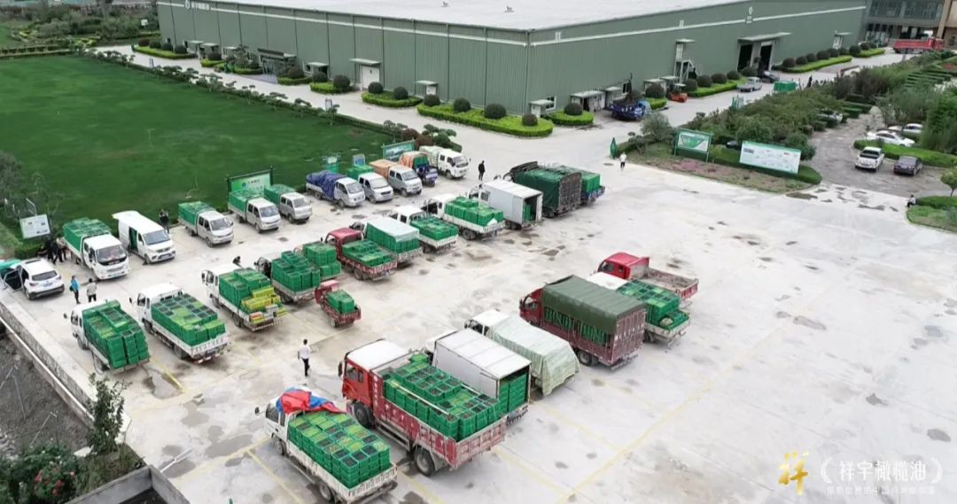 在祥宇生態(tài)產(chǎn)業(yè)園停滿了交果車輛,
