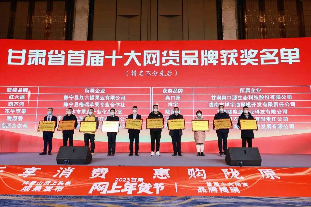 2023甘肅年貨節(jié)活動正式啟動,活動現(xiàn)場宣布“甘肅省首屆十大網(wǎng)貨品牌”評選結(jié)果,并現(xiàn)場為獲獎(jiǎng)企業(yè)頒獎(jiǎng) 。
