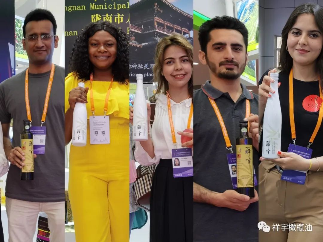 展會現(xiàn)場,來賓、客商紛紛到祥宇橄欖油展臺前駐足品鑒,