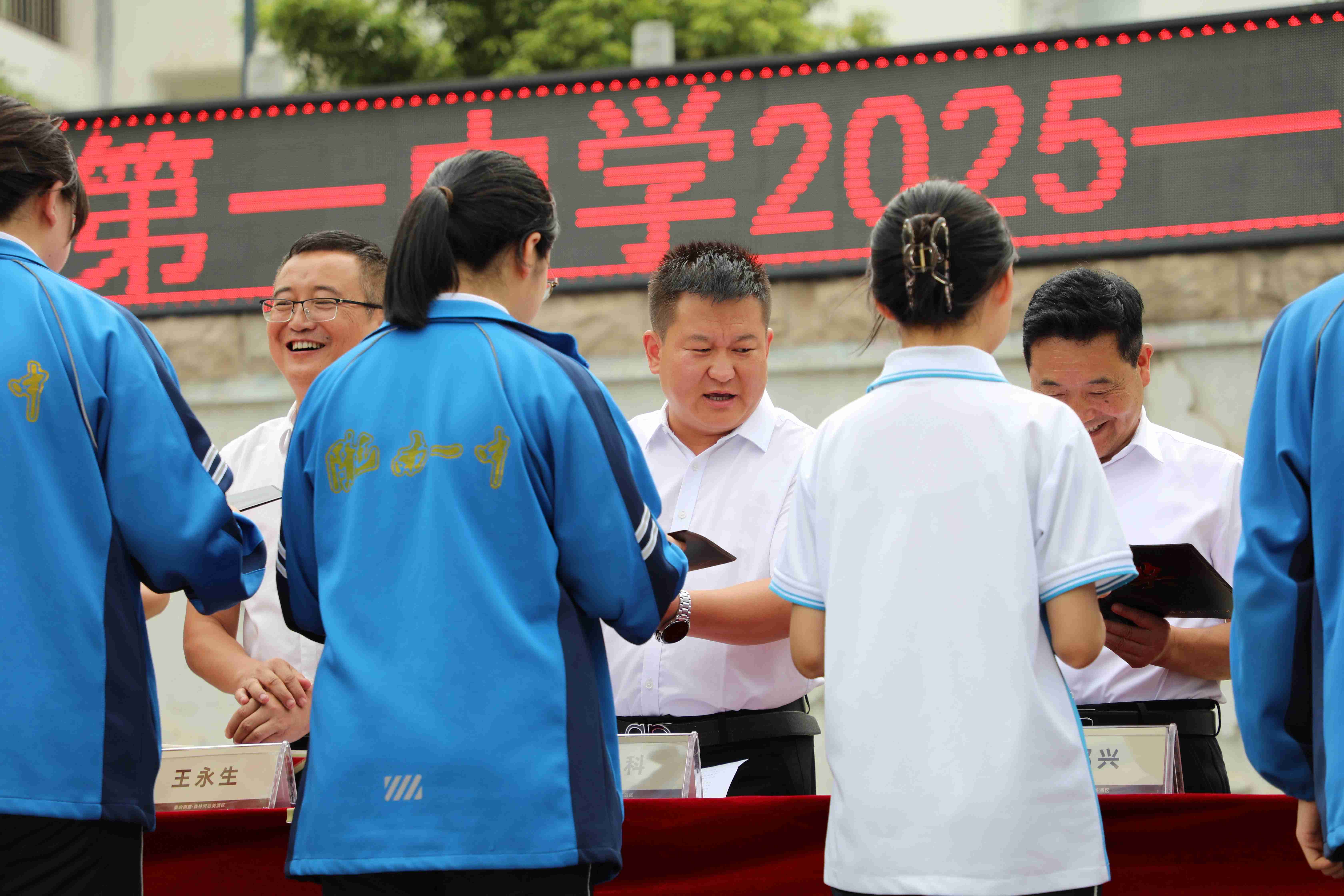 獲獎(jiǎng)同學(xué)與家長(zhǎng)一同走上領(lǐng)獎(jiǎng)臺(tái),從校領(lǐng)導(dǎo)和李總手中接過(guò)獎(jiǎng)牌與榮譽(yù)證書(shū),臉上洋溢著自豪與喜悅。
