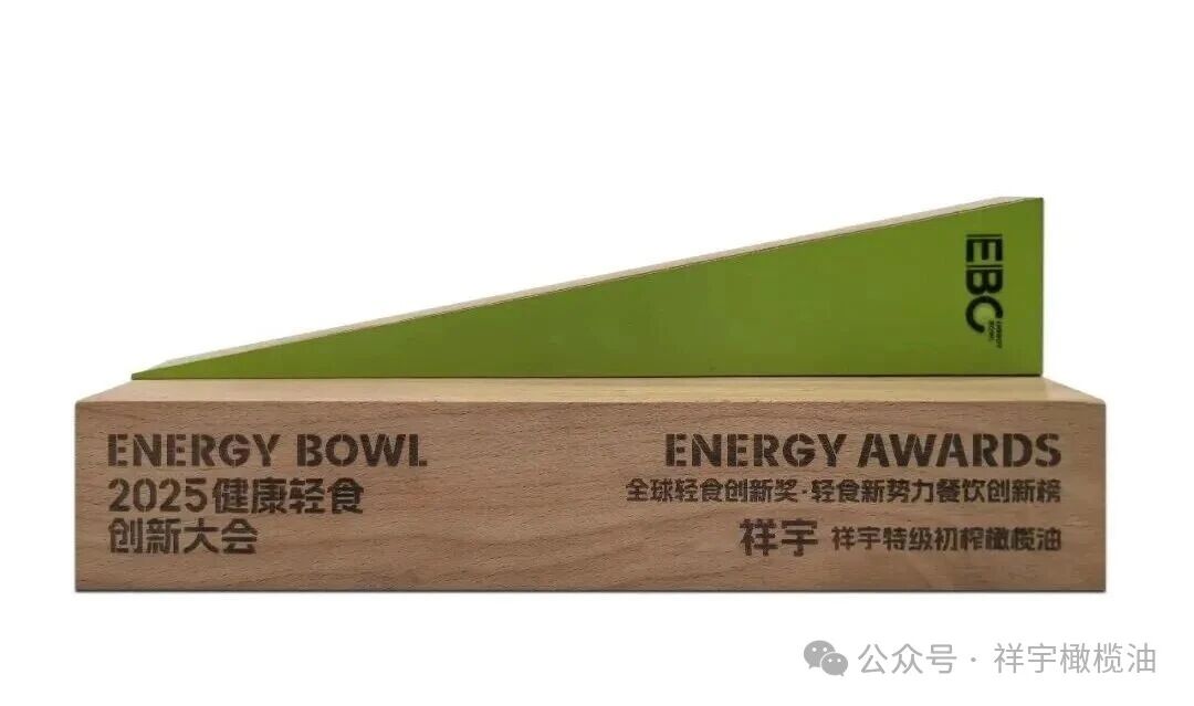 在2025EBC健康輕食創(chuàng)新大會上,祥宇橄欖油榮膺“全球輕食新勢力餐飲創(chuàng)新獎”,